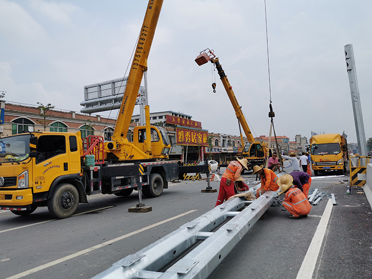 2、标志牌厂家介绍到标志杆、标志牌运抵现场,进行施工区域交通管制,现场组装装;