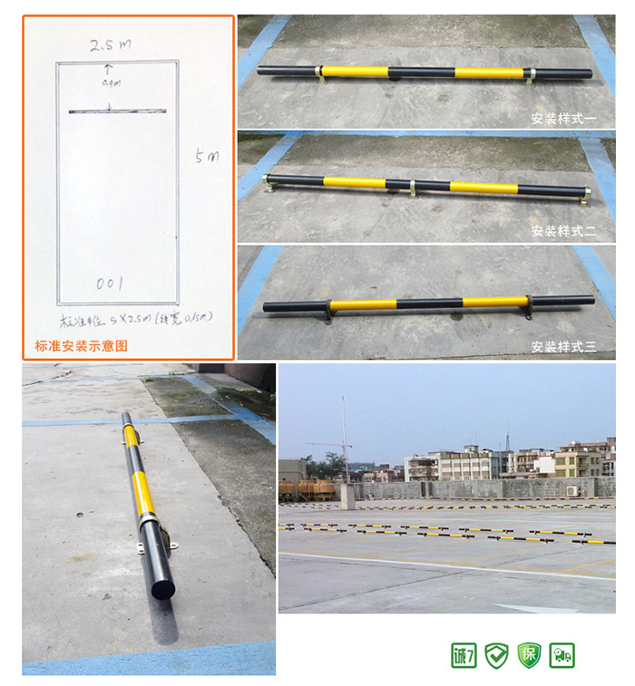 主要用于停车场、车库等场所,在固定车位上安装挡车定位杆可以使车辆倒进车位时能安全 顺利地